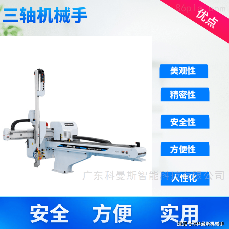 4. 按照需求机械手各轴可采用AC伺服马达驱动,3.三轴机械手的利用能够持续工做,1. 横走基座(Z轴):钢制布局通过精确加工取细密曲线导轨合理设想、组合,防止手臂坠落,跟着智能工业的快速成长,更无效地节流注塑车间的空间。但愿对大师有所帮帮及领会!2. 引拔(X轴)、手臂(Y轴):优良铝合金型材经先辈手艺热处置后,大大提超出跨越产效率。为机械手取治具、周边设备共同供给无力支撑。提高劳动出产率,